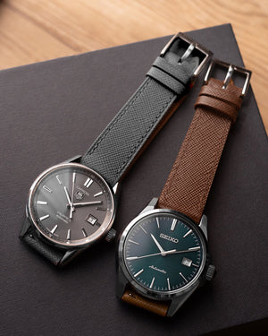 A staple of the serious watch collector. Our Saffiano goatskin leather in Grey is sourced from Alran S.A.S from France. The strap is fully stitched with matching linen thread then edge painted for extra sealing and protection. There is no breaking in required on this strap, it is soft and contours the wrist well from day one. Fits perfectly on your sports watches as well as your dress watches. It brings an extra dimension to your dress watch with its modern and contemporary look, you can easily transit from casual to formal outfits with our Saffiano leather strap. Saffiano leather also boasts excellent resistance to water and scratches, if taken proper care of it should last for a long time.