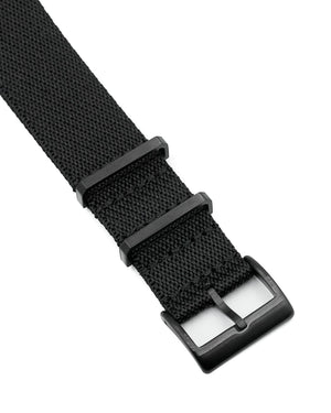 Our Nylon M II strap is back with newly improved hardware, exclusively at Monstraps. We have made adjustments to the pinhole to fit smaller size wrists and manufactured a new CNC machined angular keepers with a slimmer profile to match the high thread count twill weave fabric which comes in at only 1.2mm in thickness.