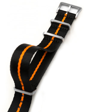 Our third generation and latest nylon strap, the Nylon M III strap is back and improved, exclusively at Monstraps. The Nylon M III straps feature a new dense weaved fabric with a subtle sheen, this fabric has more structure than the usual seat belt style nylon sold everywhere else so it does an exceptional job by adding some much needed balance and heave to counter the weight of the watch head. We have also made improvements to the hardware by manufacturing a new buckle with a slight curvage to contour the wrist even better. This is the closest quality you can get to Swiss branded OEMs' straps without shelving out 9X the price. Discover our value proposition today.