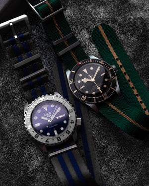 Our third generation and latest nylon strap, the Nylon M III strap is back and improved, exclusively at Monstraps. The Nylon M III straps feature a new dense weaved fabric with a subtle sheen, this fabric has more structure than the usual seat belt style nylon sold everywhere else so it does an exceptional job by adding some much needed balance and heave to counter the weight of the watch head. We have also made improvements to the hardware by manufacturing a new buckle with a slight curvage to contour the wrist even better. This is the closest quality you can get to Swiss branded OEMs' straps without shelving out 9X the price. Discover our value proposition today.