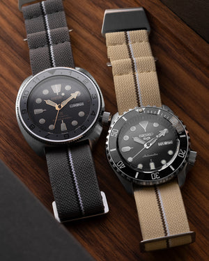 Inspired by the parachute webbing used by the French Navy “Marine Nationale” dating back to the 1950s, this elastic fabric was first used on the Tudor Submariners by the French troops during the era where watchheads were supplied without straps to the military, allowing the "Marine Nationale" to simply improvised by using their elastic parachute braid on their toolwatches.