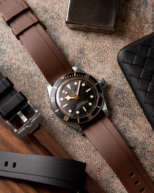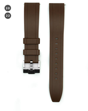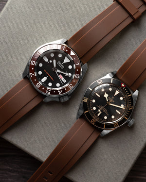 We calibrated a subtle thickness tapering for wear comfort as number one priority. Please note that the length of this series of straps cater to larger wrist sizes, hence for wrist sizes below 6.4 inches please try our Fluoro rubber strap instead