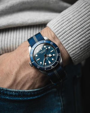 This latest version of our Blackbay Adjustable III features vintage inspired ribbed fabric pattern in a single layer configuration combined with the usual swiss grade hardware, exclusively at MONSTRAPS. It will look at home on the Tudor BB58, BB41 and the FXD.