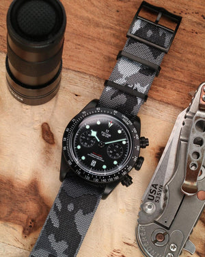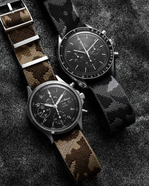 A MONSTRAPS exclusive, our Woven Arctic Camo strap is the cumulation of our expertise in strap manufacturing and the product of our countless hours of research. Not satisfied with the common camo printed nylon strap on the market, we decided to make our own Woven Arctic Camo straps with its intricate camo pattern woven with the aid of a sophisticated computer aided loom. The strap is then individually stitched and finished, with each strap being unique in it's weaved pattern.