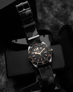 The result is a stunning strap with 3D like texture and finish, we also opted for a specific threading with lesser sheen to accentuate the beautiful grey camo pattern. If you look at the OG Tudor straps we were inspired by, you will realize that this is the closest quality you can get to Swiss branded OEMs' straps without shelving out 6X the price. Discover our value proposition today.