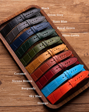 Get started here on your personalised Alligator leather strap. Due to scarcity of alligator leather, each piece is uniquely custom made based on your order's specification.