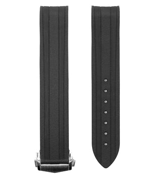 Our latest FKM rubber strap will ship with the deployant clasp as pictured. You can swap out for the original Omega deployant clasp if you have it and it will fit our strap. The clasp is made with the same high quality 316L stainless steel as the original. The strap is extremely soft and pliable and is comfortable from the go. It is designed for an integrated fit with the Seamaster and is also fully waterproof.