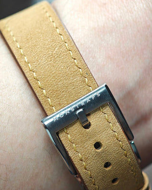 {FEB 2025}: We have upgraded our 16mm deployant clasp to a high end spring leaf mechanism type, exclusively by MONSTRAPS. The deployant clasp retains its compact presence on the wrist by being flushed to the wrist and allows for the leather strap be used extensively with minimal damage to the pinholes, henceforth increasing its longevity. In our opinion this is the best investment you can make for your watch strap collection.