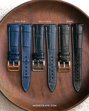 The go to for every formal occasion, no watch collection is complete without an authentic alligator leather strap. Our fully handcrafted strap is the best complement to your dress watch without the hefty price tag associated with the American alligator hide. We only use the best part of the hide for this strap, the square scales which results in a clean and consistent look.