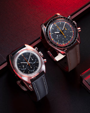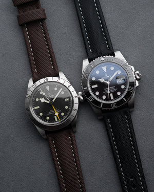 Our new classic sailcloth strap is made by the skilled artisans at Synthostraps and finished with machine stitching. It's the details that matter and we reinforce the stitching on the looping keepers and selected a inner padding material which offers a decent support yet contours the wrist easily.