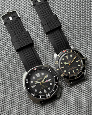 Our new secure fit strap, molded in FKM rubber for superior durability. This is the same top grade rubber used in aerospace industry. As usual, our straps are resistant to UV rays, extreme temperatures, mechanical stresses, chemicals, and seawater. All our FKM tropic strap also comes with pre-installed quick release spring bars for easy strap change.