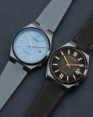 JAN 2026: Our latest Epsom leather strap made for the new smaller size Citizen Tsuyosa 37mm series is here. This leather strap is made to fit directly to the watch head without needing any additional adaptor, reducing the effective lug to lug measurement and making the watch much more wearable on the wrist. The epsom leather is soft and requires no breaking in from day one.