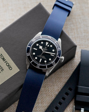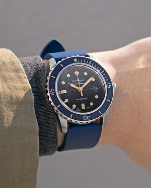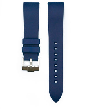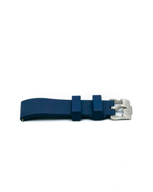 Moulded from swiss grade Fluoro-Elastomer (FKM) rubber typically used in the aerospace and aviation industry for class leading durability. Excellent resistance to UV rays, extreme temperatures, mechanical stresses, chemicals, and seawater. Strap is non-toxic, non-marking, non-allergen and does not attract dust.