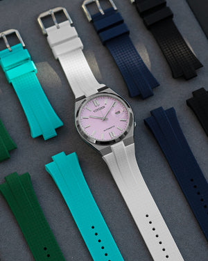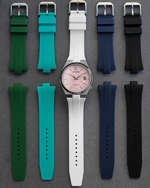 OCT 2024: Our latest FKM rubber strap for the popular Citizen Tsuyosa series is here. This integrated fit strap is designed to fit the Citizen Tsuyosa NJ015 series with a flushed seamless fit.