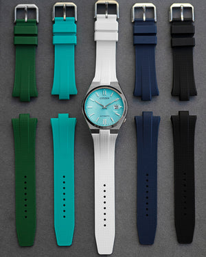 OCT 2024: Our latest FKM rubber strap for the popular Citizen Tsuyosa series is here. This integrated fit strap is designed to fit the Citizen Tsuyosa NJ015 series with a flushed seamless fit.