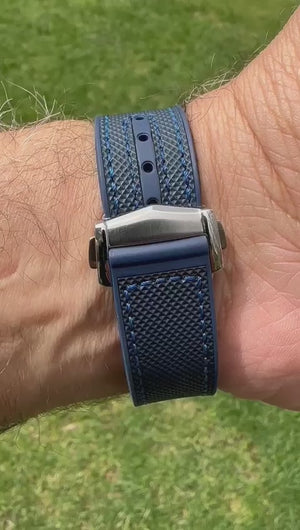Our hybrid rubber strap will ship with the deployant clasp as pictured. The clasp is made with the same high quality 316L stainless steel as the original. The strap is extremely soft and pliable and is comfortable from the go. It is designed for an integrated fit with the Speedmaster and is also fully waterproof.