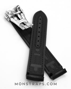 Our hybrid rubber strap will ship with the deployant clasp as pictured. The clasp is made with the same high quality 316L stainless steel as the original. The strap is extremely soft and pliable and is comfortable from the go. It is designed for an integrated fit with the Speedmaster and is also fully waterproof.